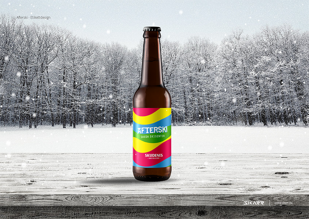 Afterski betyr glede og ofte masse ulike sterke farger på skiklær. Denne følelsen ønsket vi å få med på etikettdesignet som vi har levert til Skudenes Bryggeris Afterski øl. Resultatet ble et lystig design som viser veldig godt igjen.