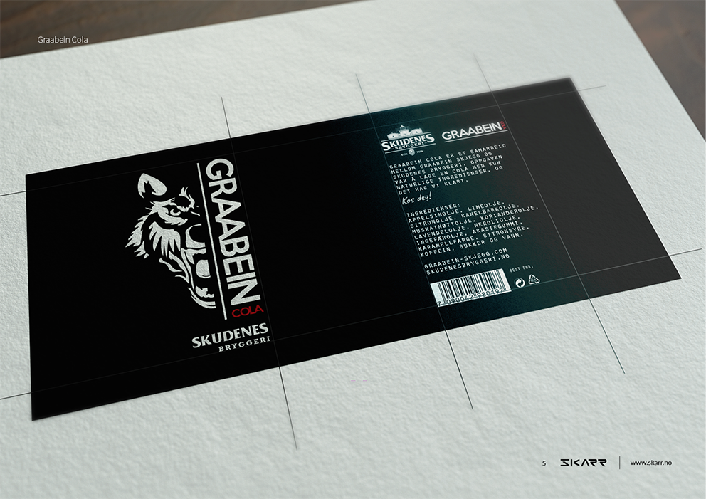Etikettdesign for Graabein Cola, et samarbeid mellom Graabein Skjeggprodukter og Skudenes Bryggeri