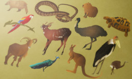 Igjennom illustrasjonsprosessen var det like viktig å følge de samme prinsippene som ble grunnlagt i profileringen av Haugaland Zoo. Utrykket her skulle også være lekent og mykt, men samtidig vise hvor praktfulle dyrene er.