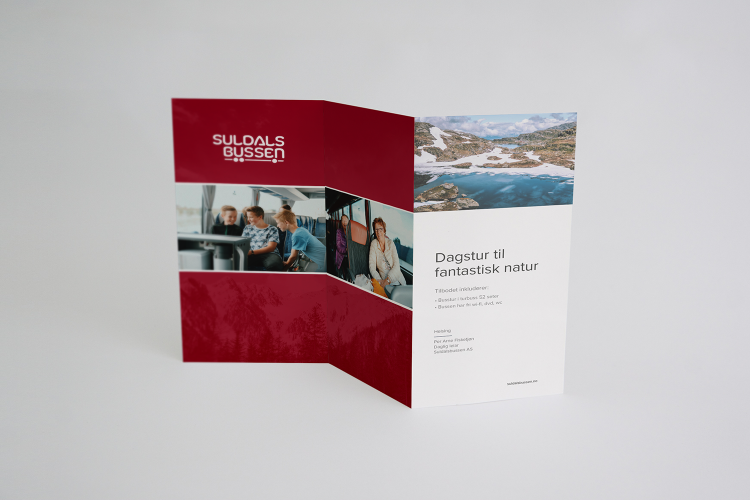 Vi har levert logo, profilhåndbok og design til nettsidedesign for Suldalsbussen. Suldalsbussen driver med transportutleie på Haugalandet samt pakkereiser innenlands og utland.