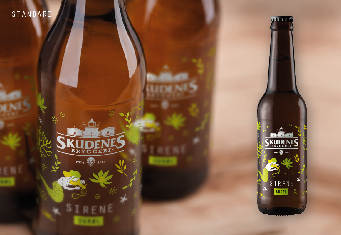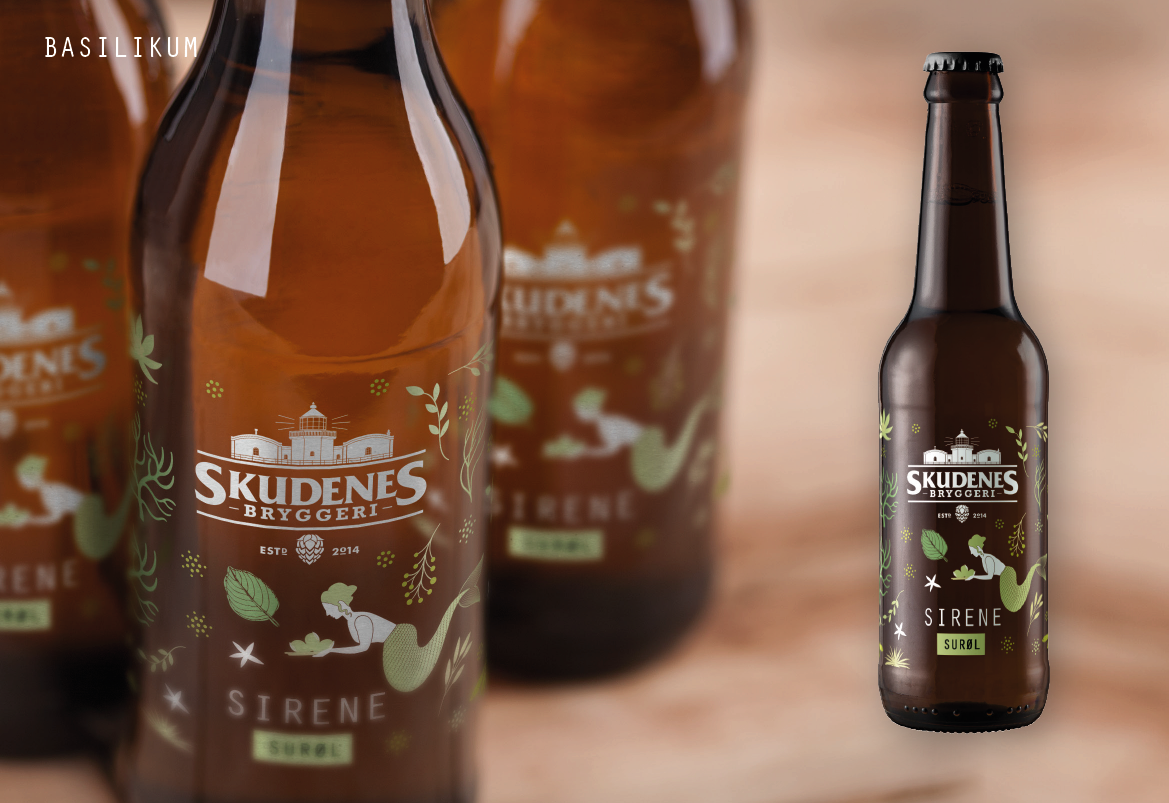 Design til en serie med surøl for Skudenes Bryggeri. På etiketten pryder en sirene som i følge gresk mytologi var kvinnelige vesener som lokket sjøfolk til å begå skipsbrudd mot klippene på øyen der de bodde. Farger og elementer på etiketten justeres ut fra ingredienser i ølen.